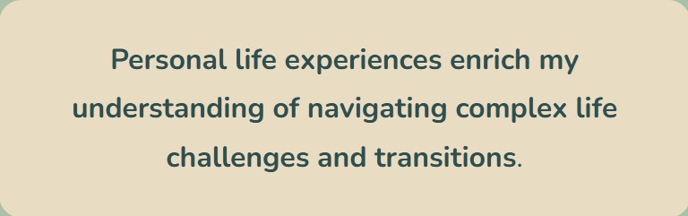 I have been through a number of personal challenges in life, including the experience of having a life changing diagnosis. I therefore have great empathy and fully understand how unexpected life events and challenges can be hard to navigate.