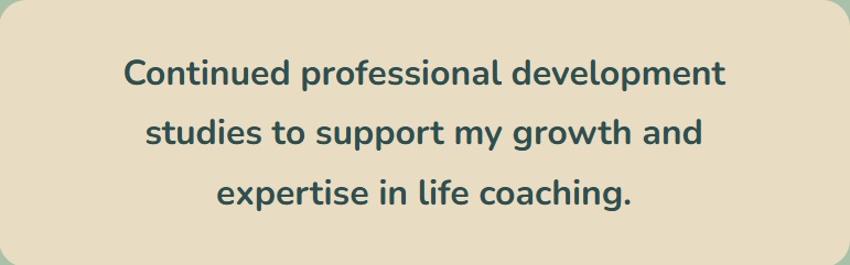 Since finishing my career as a teacher and mentor, I have furthered my learning with additional certified training in: Holistic Health and Nutrition, Holistic Nutrition and Herbalism, Holistic uses of Aromatherapy, Mindfulness Based Cognitive Therapy, Building Confidence and Self Esteem, Anxiety Management, Menopause Wellness and Level 3 Diplomas in Life Coaching, Advanced Transformational Life Coaching and Positive Psychology. My learning and professional development will be ongoing as there are so many areas I want to explore in more depth.